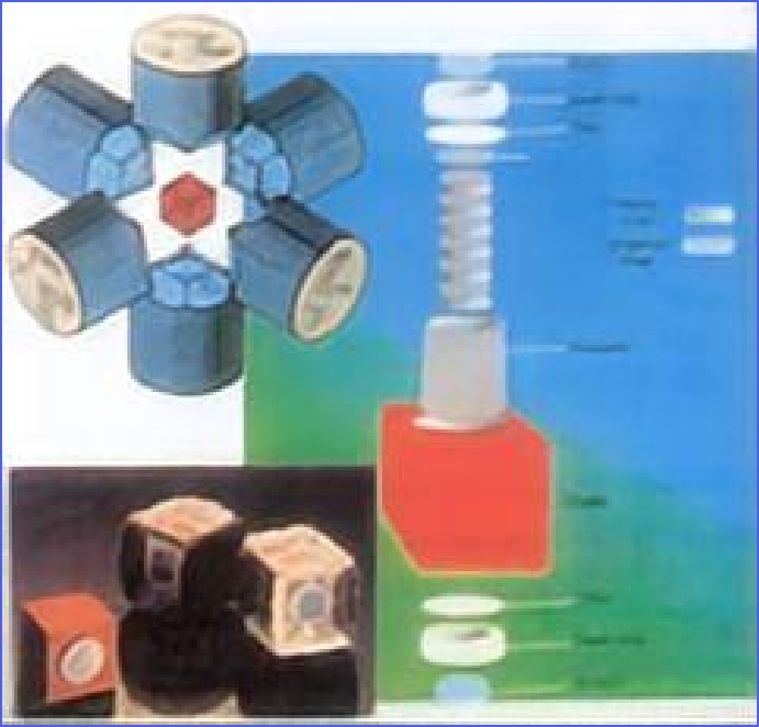 人造金刚石液压机也称六面顶,它利用液压原理和电阻加热来产生最高6GPa和1800℃的高温环境,用于高温高压下材料研究及原位高压物理性质测试。传压介质采用32.5mm叶腊石立方块,通过特殊设计的装样组合,实现可控的压力场和温度场,用于新材料的合成与探索。